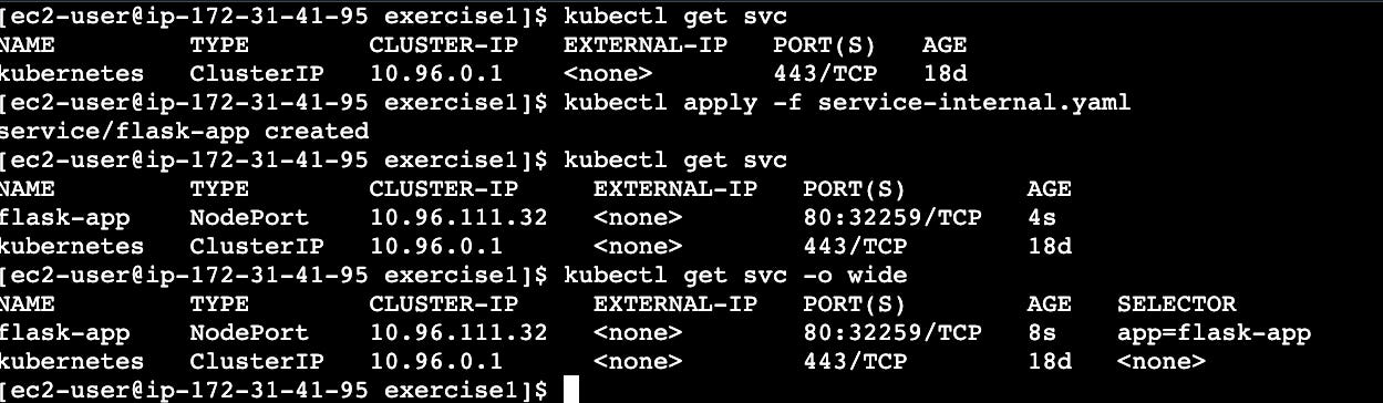 kubectl get svc -o wideThen, switch to NodePort (external access):