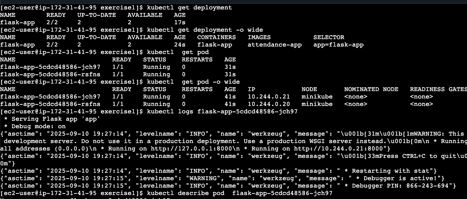 kubectl port-forward service/flask-app 8080:80Or you can access the app on the public IP of the EC2 machine