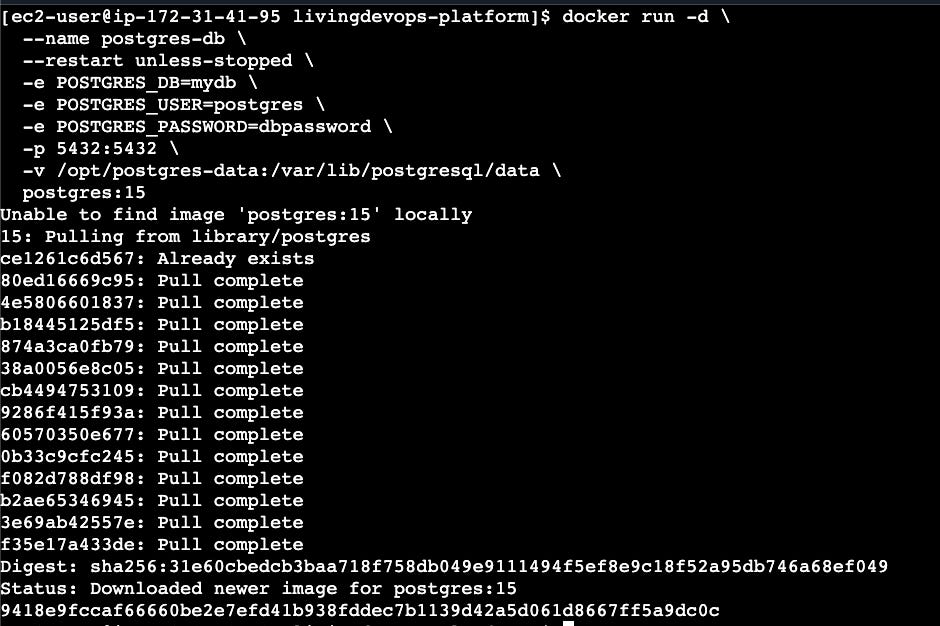 Database: A Postgres database container running in the EC2 machine. In production, you will be running the database on RDS(AWS), Cloud SQL (GCP), or another cloud alternative, or on-prem
